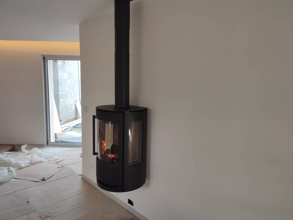 Installation d’un poêle à bois mural Hwam LUMA 7 kW - Artisan certifié RGE QualiBois