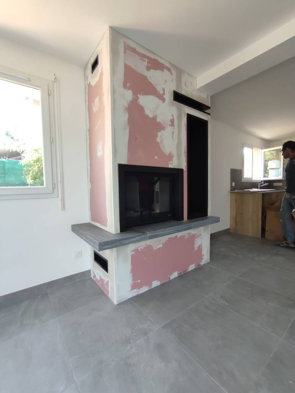 - La création d’un coffrage isolé et esthétique avec placo et grilles de ventilation