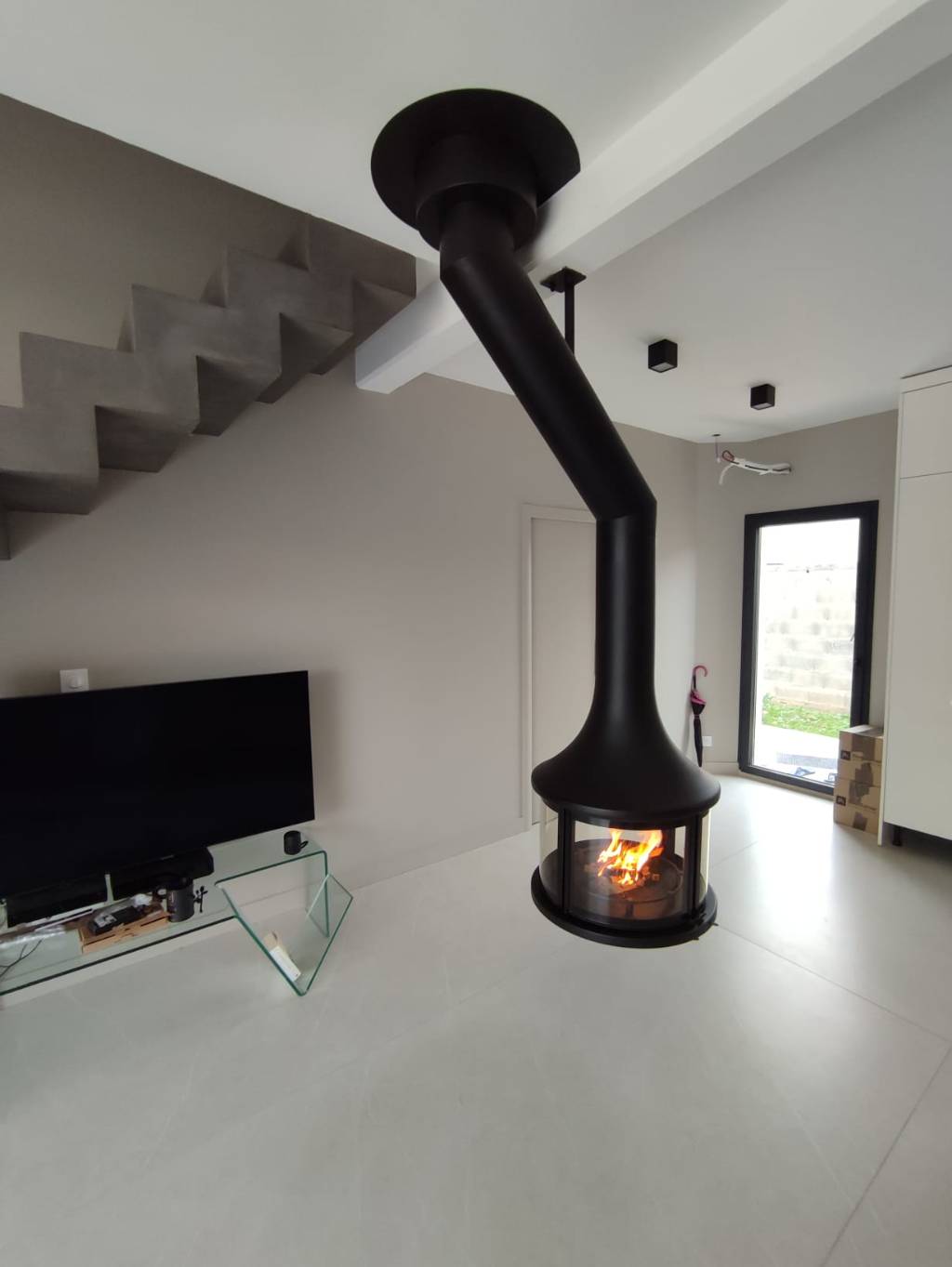 Cela limitait fortement les possibilités d’intégration de la cheminée et nécessitait une conception parfaitement adaptée à l’espace disponible.